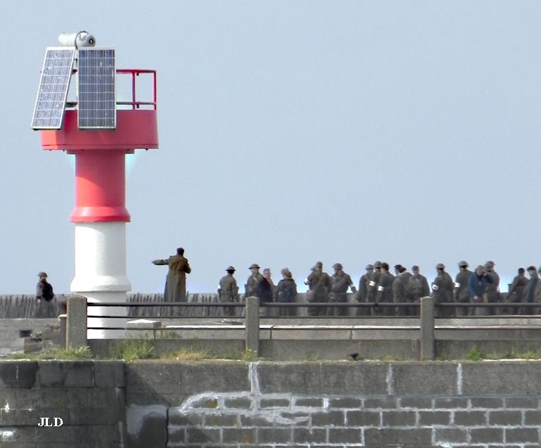 Comme on peut le voir sur trois de ces photos, Christopher Nolan règne en maître au milieu de ses troupes sur la jetée de Dunkerque.